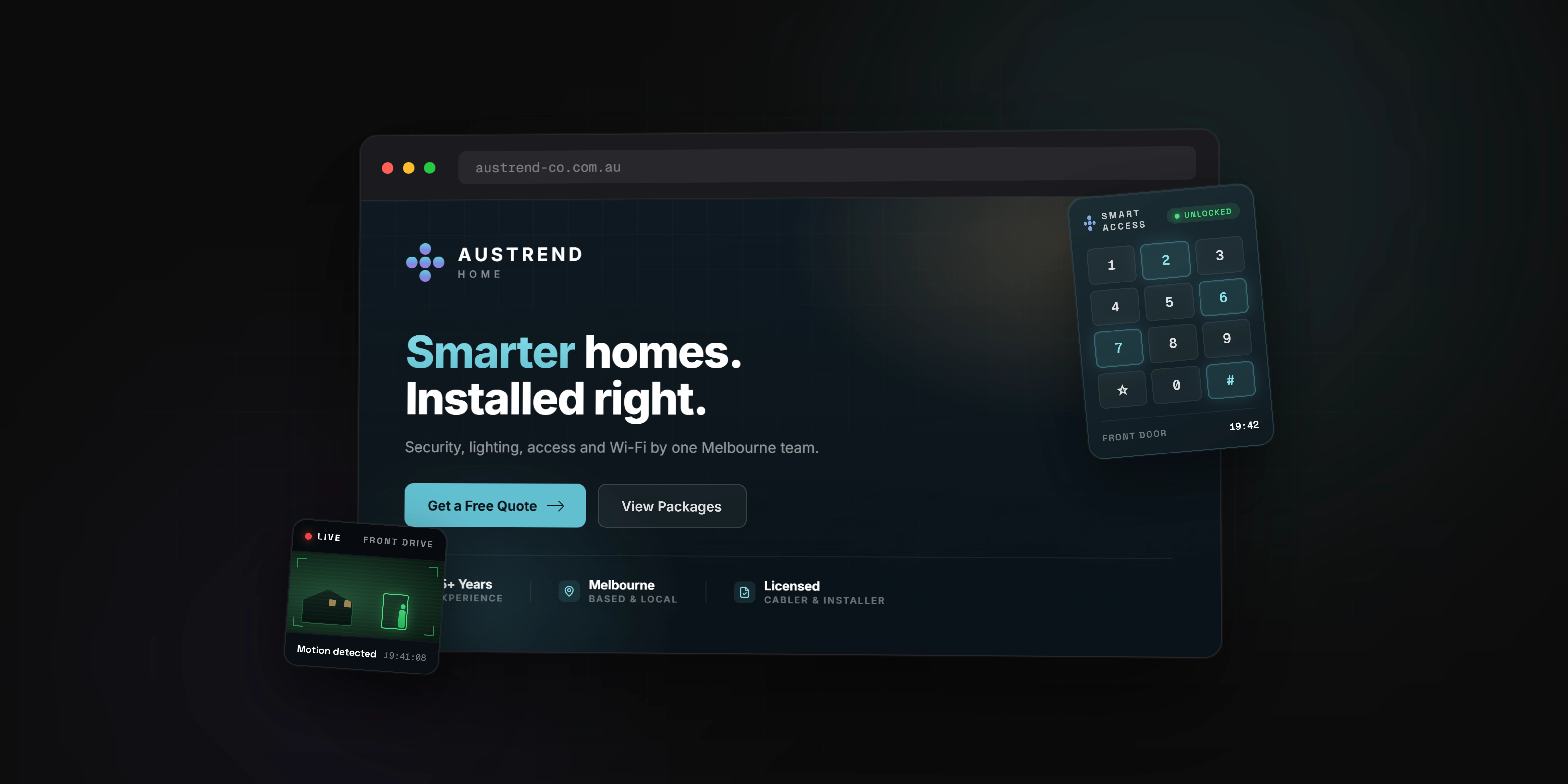 Bilingual lead generation platform for a Melbourne smart home installer, with SEO-tuned service pages, a multi-step quote form, and an admin CRM.